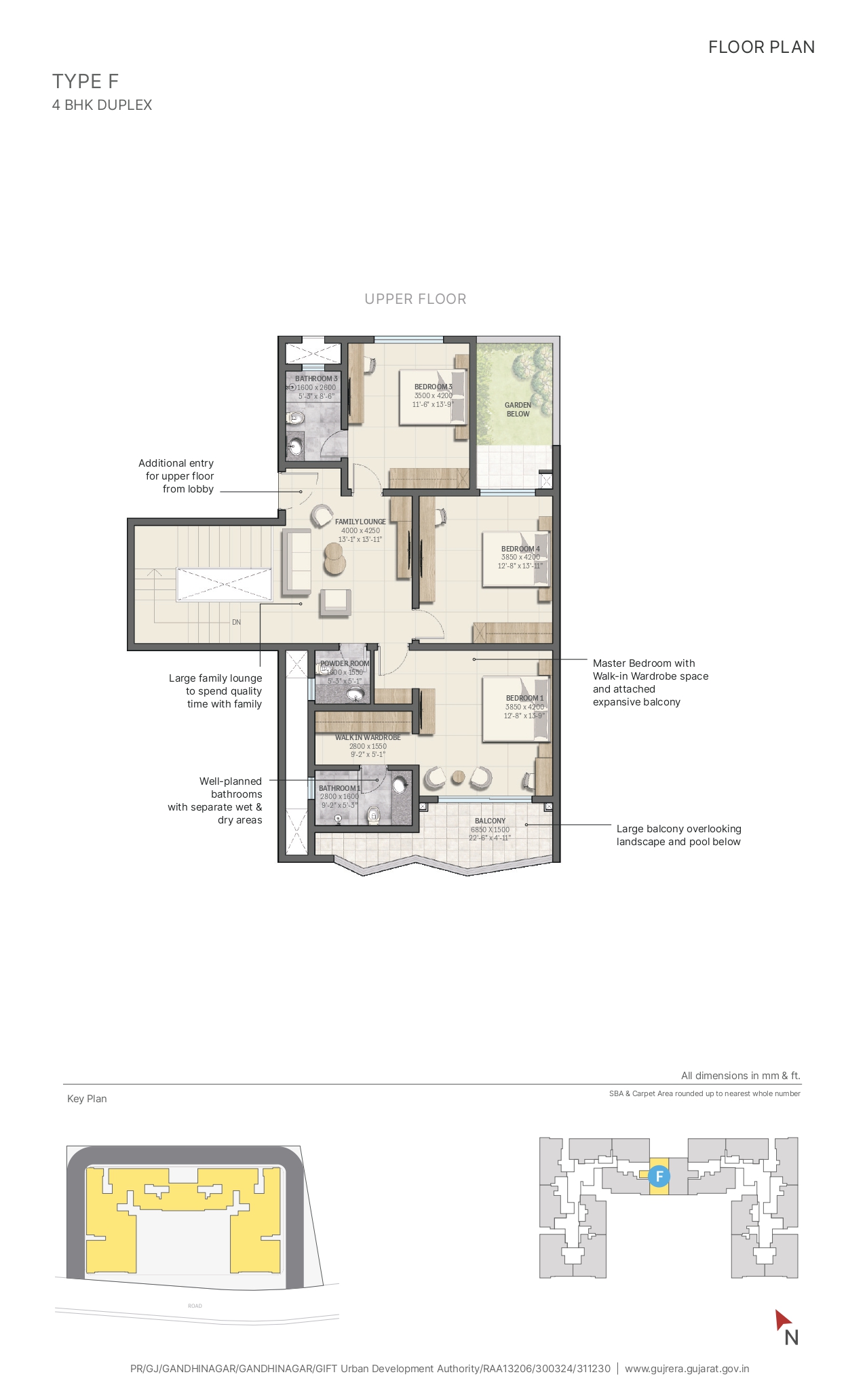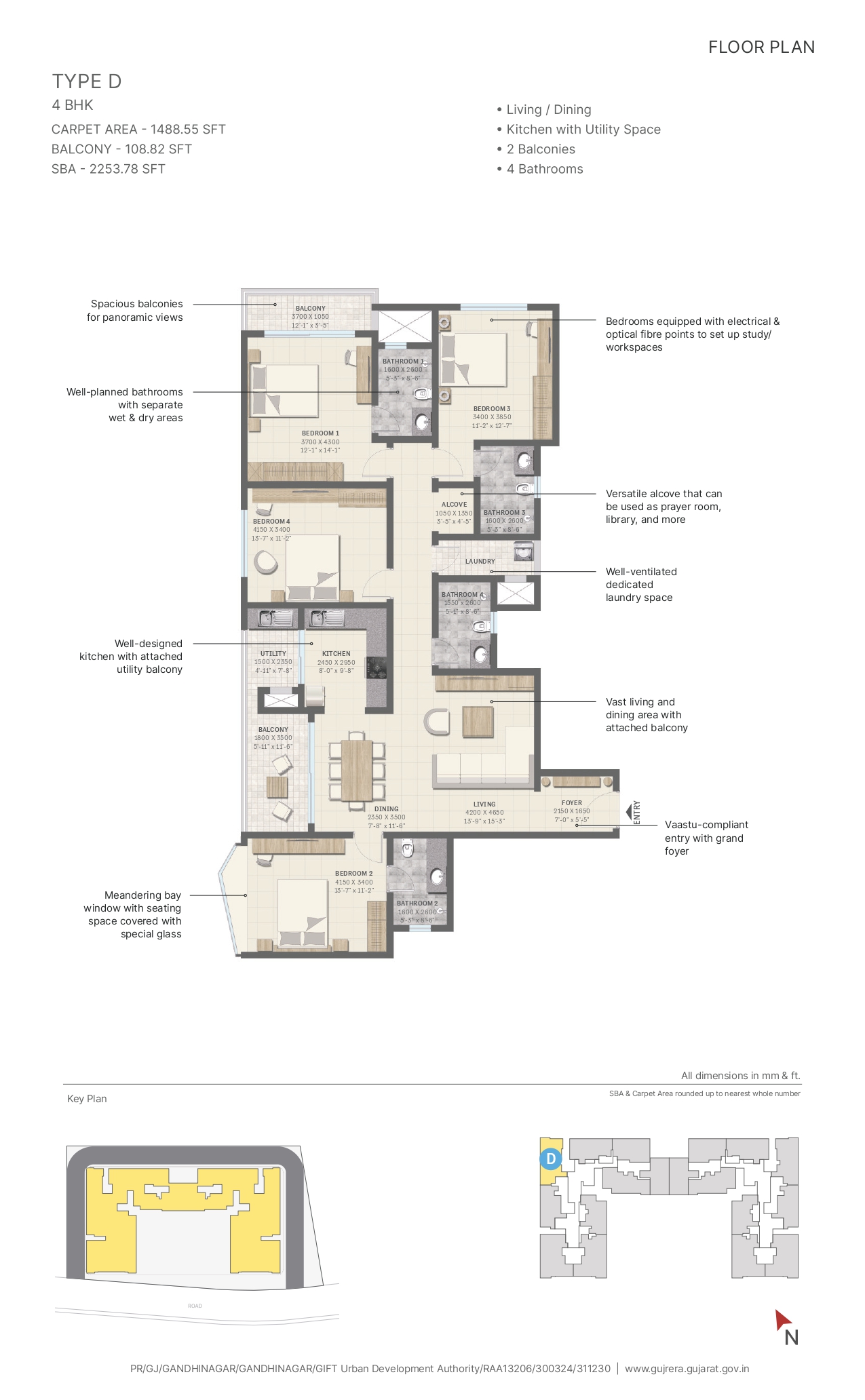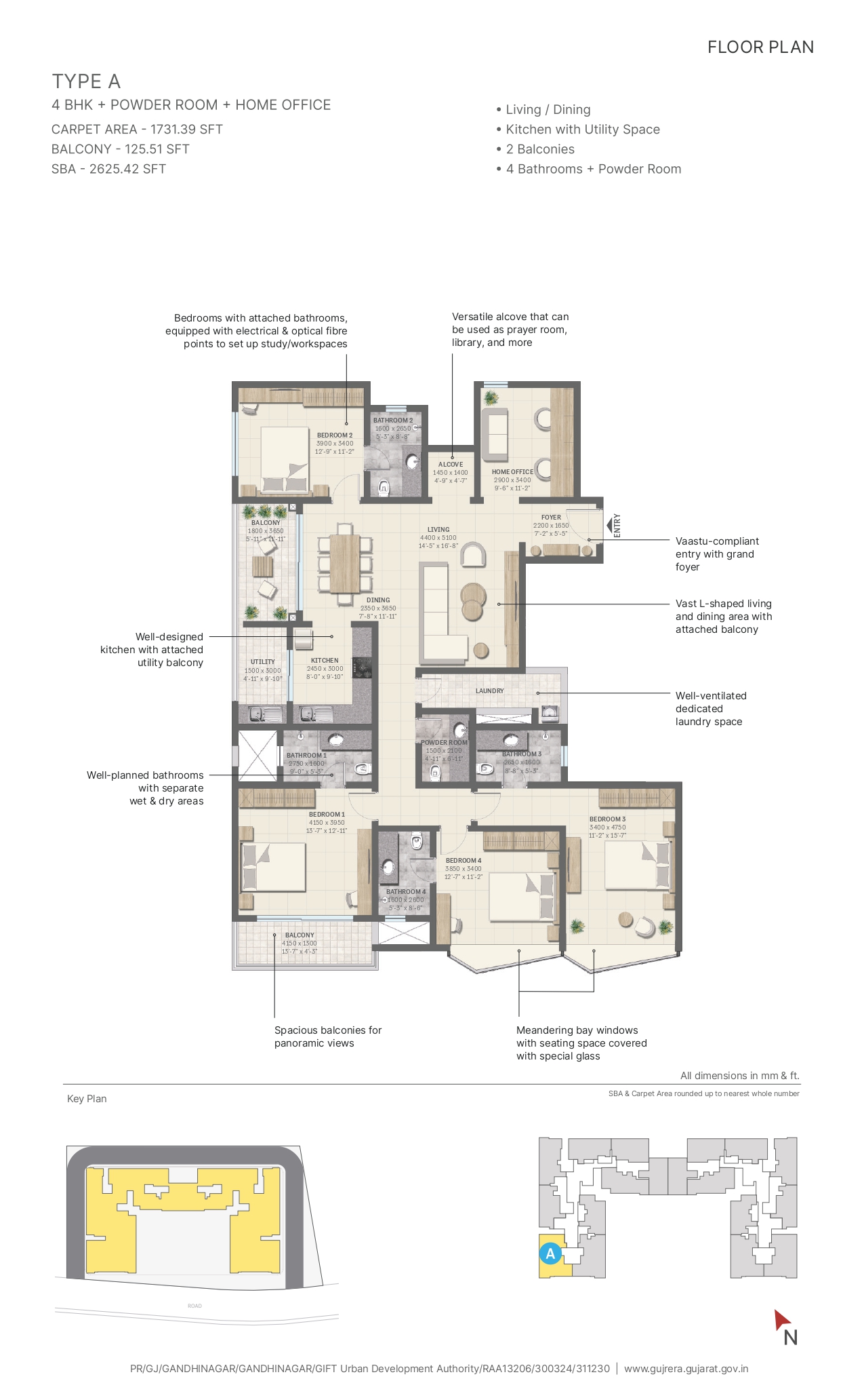 4 BHK + Powder + Home Office: 2611 – 2625 sq.ft
