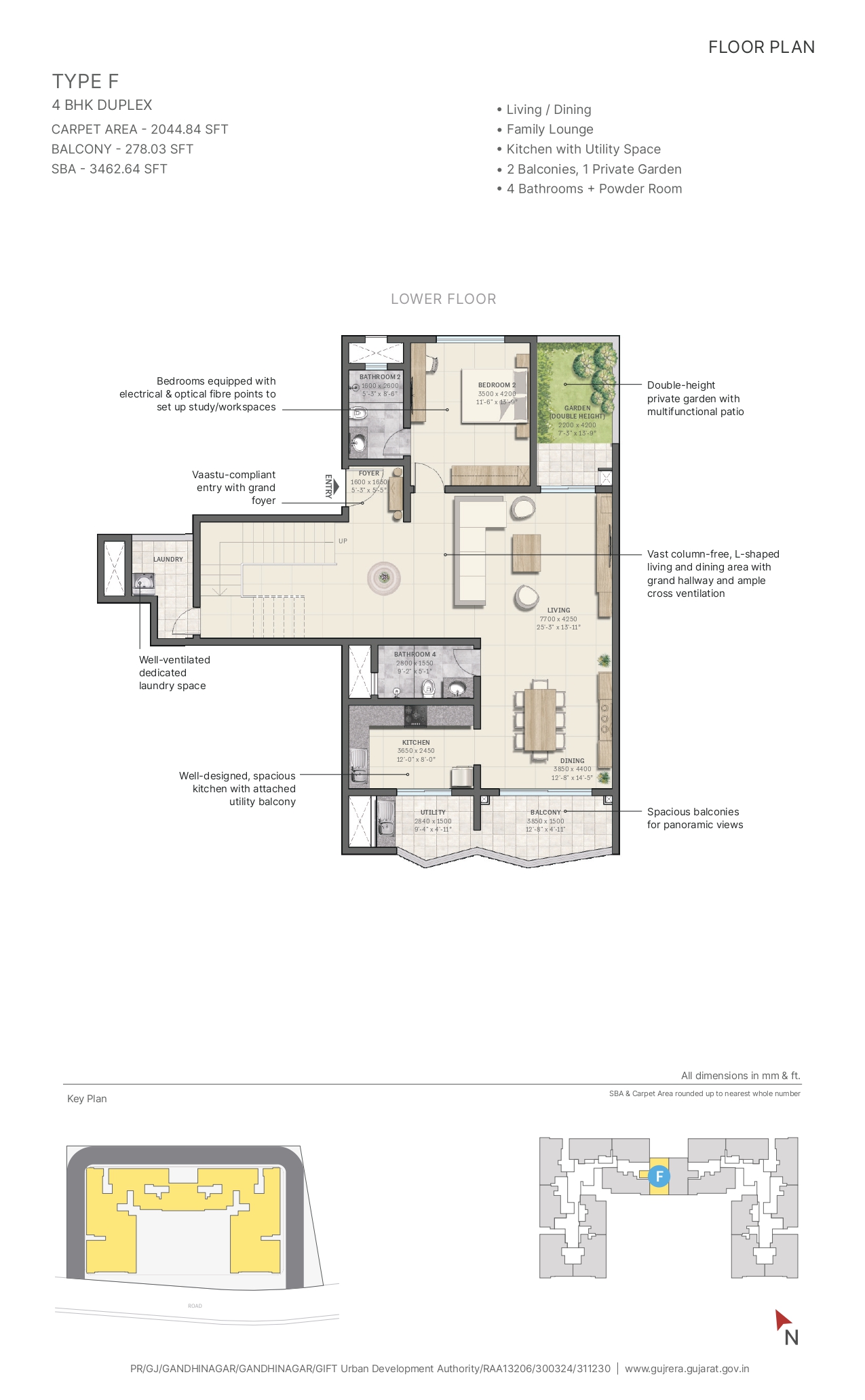 • 4 BHK + Powder + Home Office: 2611 – 2625 sq.ft